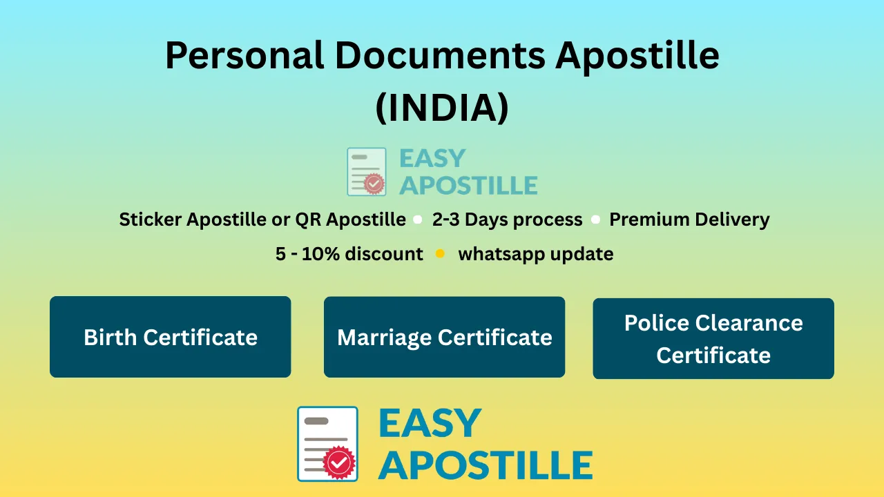 - MEA Apostille (Sticker/e-Apostille as applicable)