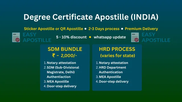 Includes Notary + SDM (Delhi) + MEA + premium pickup/return with WhatsApp/email updates. - For State Home Dept route (if recipient insists), we quote case-by-case.
